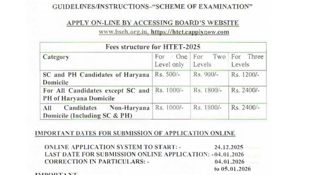 HTET 2025 Apply Online: हरियाणा में टीचर बनने का मौका, आज से शुरू आवेदन, जानें फीस–योग्यता–लास्ट डेट